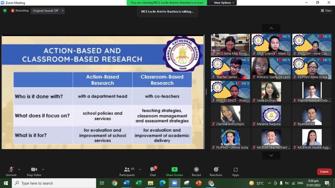 The Manila Cathedral School and Mr. Bryan M. Gallos, QADPC of HCCS, conducted a successful seminar on Action Research for all MCS Personnel last March 14, 2024, at the MCS Library. This seminar allows for greater dissemination of action research papers to improve and update existing research methods, while helping develop teaching strategies, classroom management, and school operations.