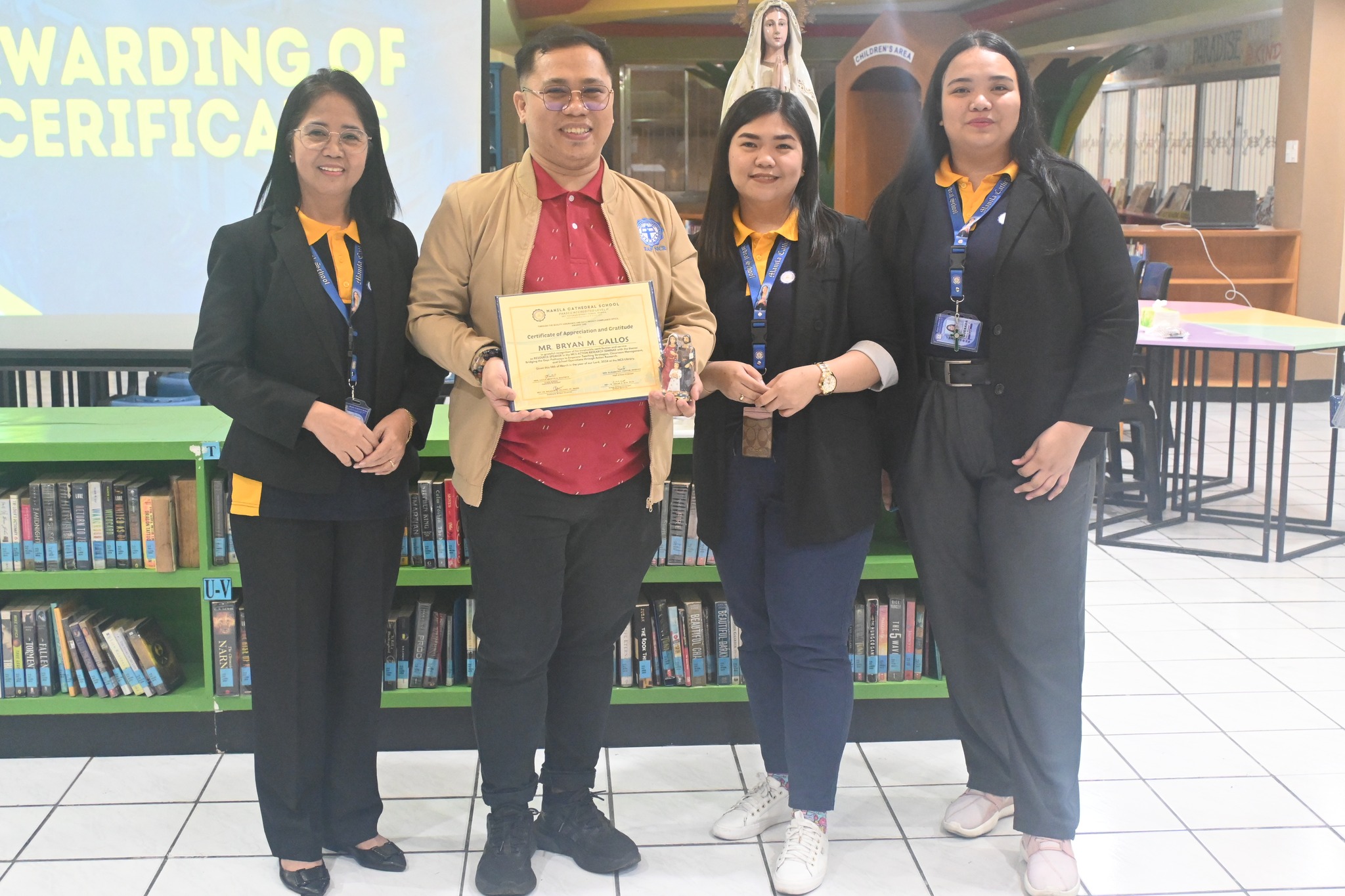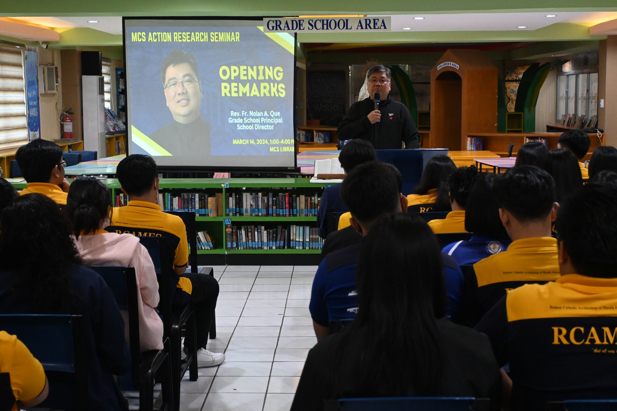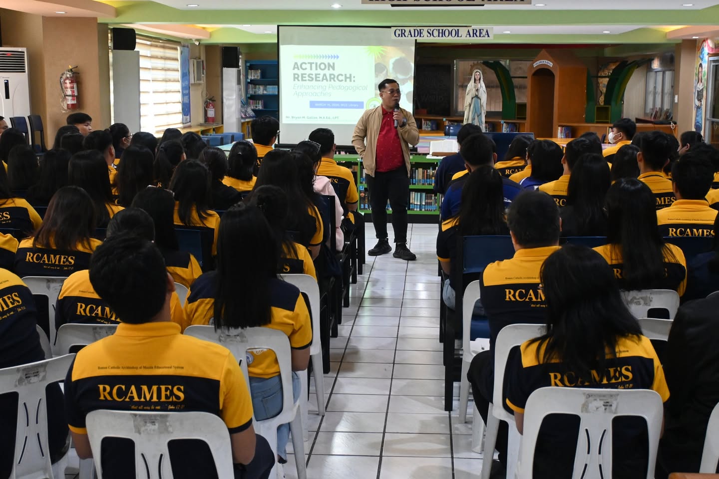 The Manila Cathedral School and Mr. Bryan M. Gallos, QADPC of HCCS, conducted a successful seminar on Action Research for all MCS Personnel last March 14, 2024, at the MCS Library. This seminar allows for greater dissemination of action research papers to improve and update existing research methods, while helping develop teaching strategies, classroom management, and school operations.