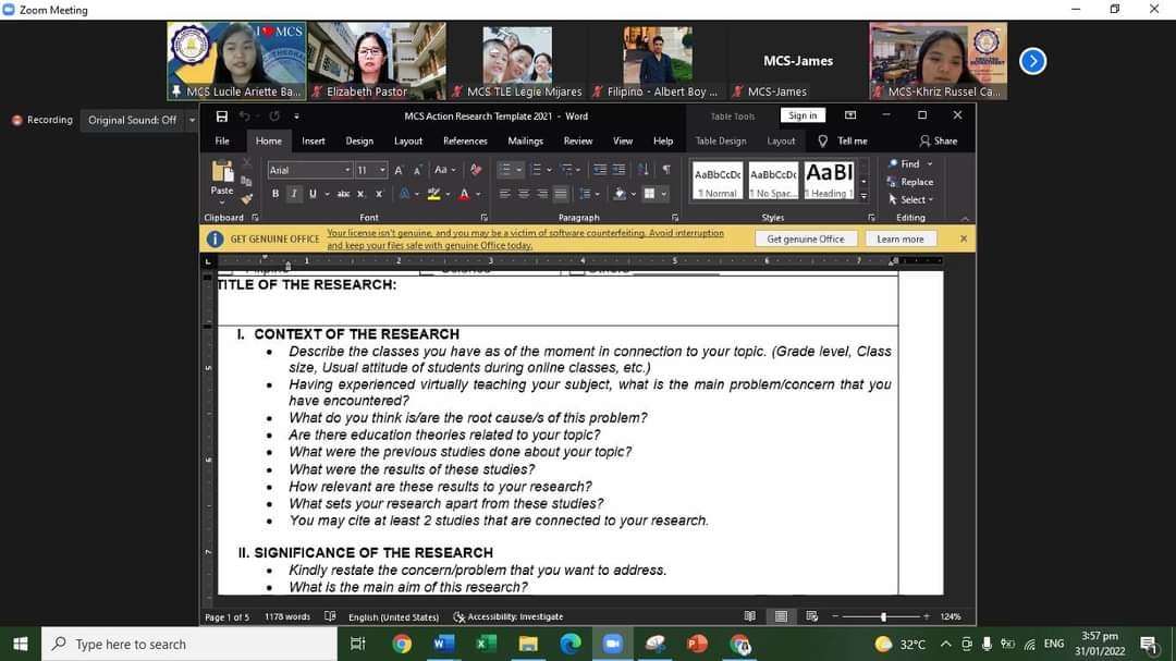 "Enhancing MCSians' Culture of Researching and Knowledge across Strands"